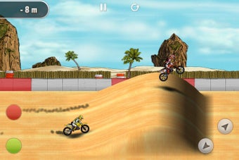 Mad Skills Motocross se prend en main très facilement. Lors des courses, vous affrontez un adversaire coriace avec seulement quelques boutons. À gauche, deux points rouges et verts permettent de freiner et accélérer. À droite, deux boutons permettent de se pencher en avant ou en arrière pour doser les sauts.